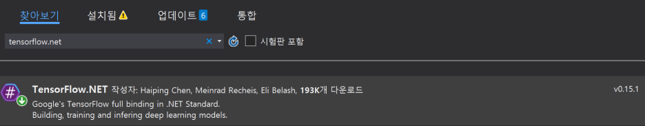 nuget패키지에서 tensorflow.net을 검색하면 나온다.