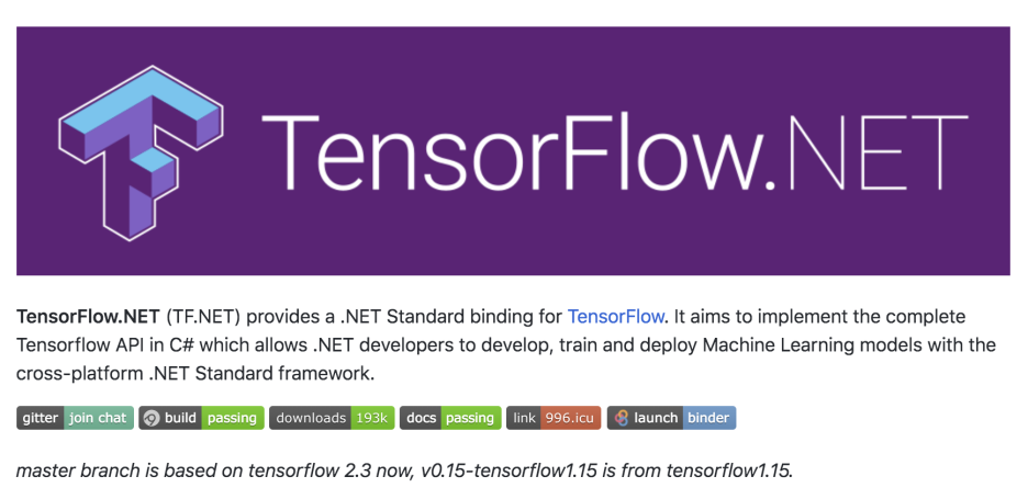 우선 c#에서 바로 사용하기 위해서 래핑 라이브러리인 tensorflow.net 을 사용 할 것입니다. tensorflow.net 은 시카고에 있는 Scisharp stack팀에서 진행하고 오픈소스 라이브러리로 텐서플로우를 c#으로 래핑하고 있는데