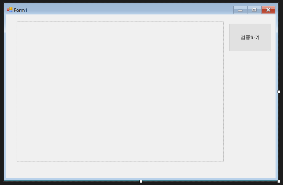 그 다음에 form에 picturebox와 버튼하나 배치하고 버튼 눌르면 검증하도록 한다.