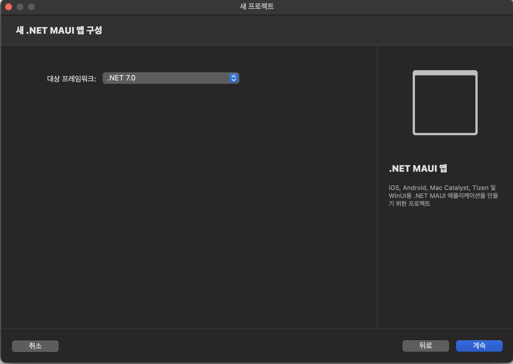 대상 플랫폼은 .net 7.0으로