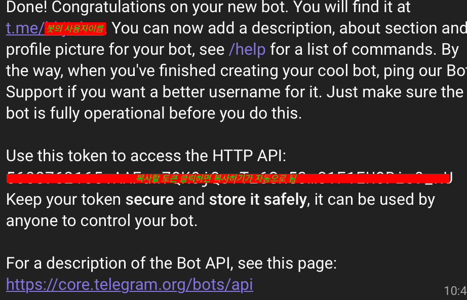 텔레그램 봇 클래스를 하나 만듭니다. 그러기 전에 자기 토큰 번호를 알아야되는데 텔레그램 사이트 접속후 가입/로그인 후