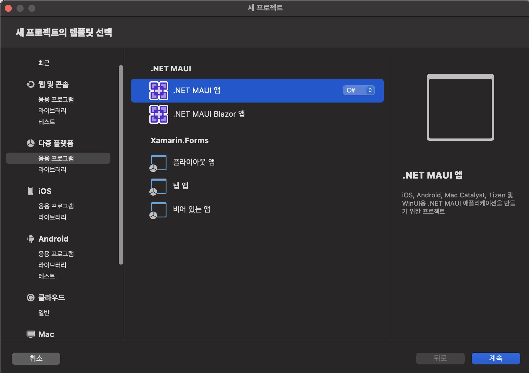 다중 플랫폼->c# maui를 선택하시고 만드시면 됩니다.