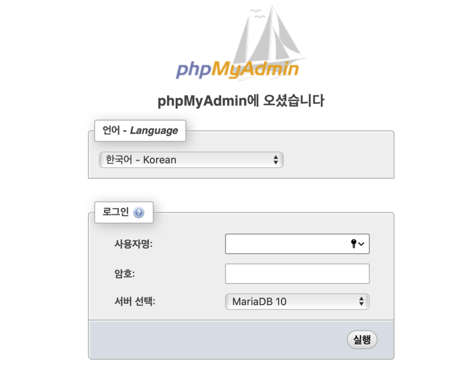 또는 http://서버주소/phpMyAdmin/index.php 접속