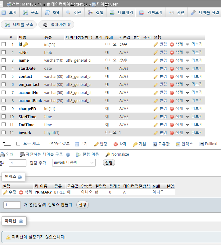 처음에 사람관리를 위해 user테이블하나 생성