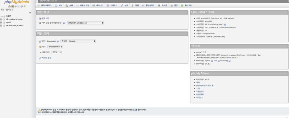 현재 테스트구축할 서버는 시놀로지로 maria10으로 phpmyadmin을 사용할 것이다.