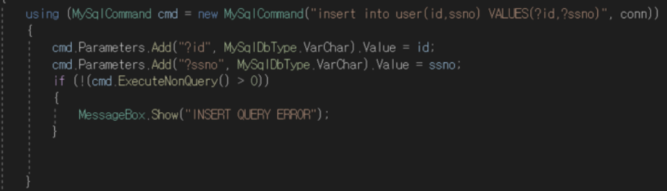 SqlCommand cmd = new SqlCommand("insert ~~");