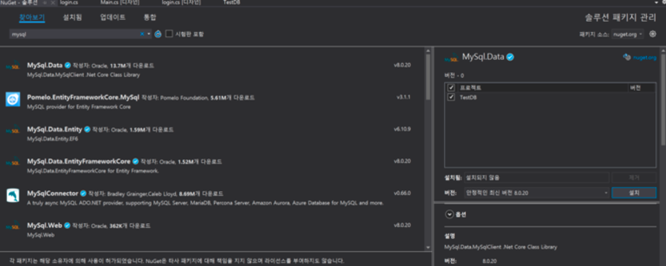이제 다음과 같이 c# 프로그래밍을 하게 되면 마리아 데이터베이스와 mysql데이터베이스와의 완벽한 연동이 가능하다