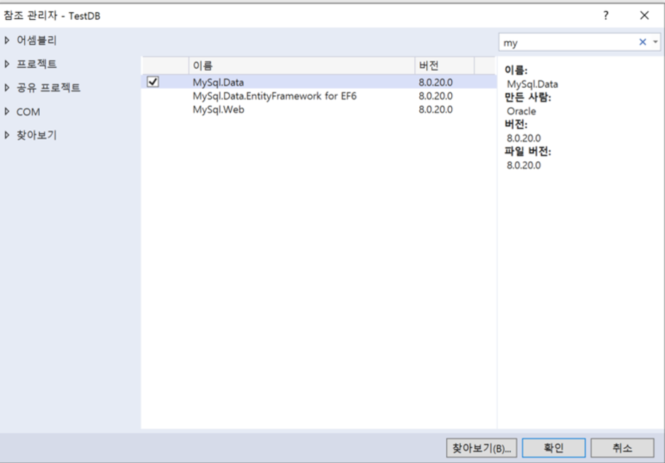 참고로 커넥터를 다운받아서 설치하지 않으면, 위와같은 참조가 뜨지 않으니.