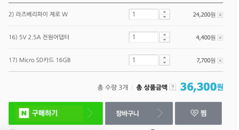 밑에 3개만 사고,(물론 좀 제로w가 좀 느려서 여러기기 연결하라면 라즈베리파이4b 사시는걸로)