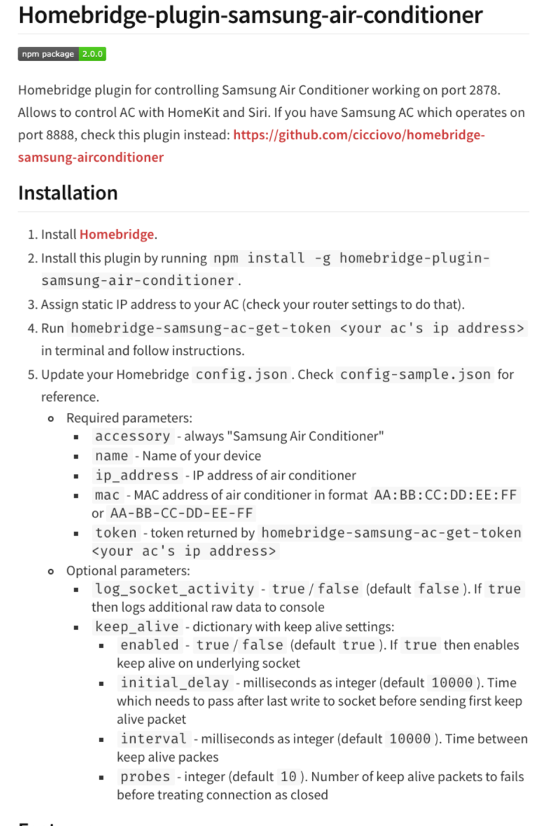 위에 homebridge Plugin Samsung Air Conditioner을 설치하시면 됩니다.