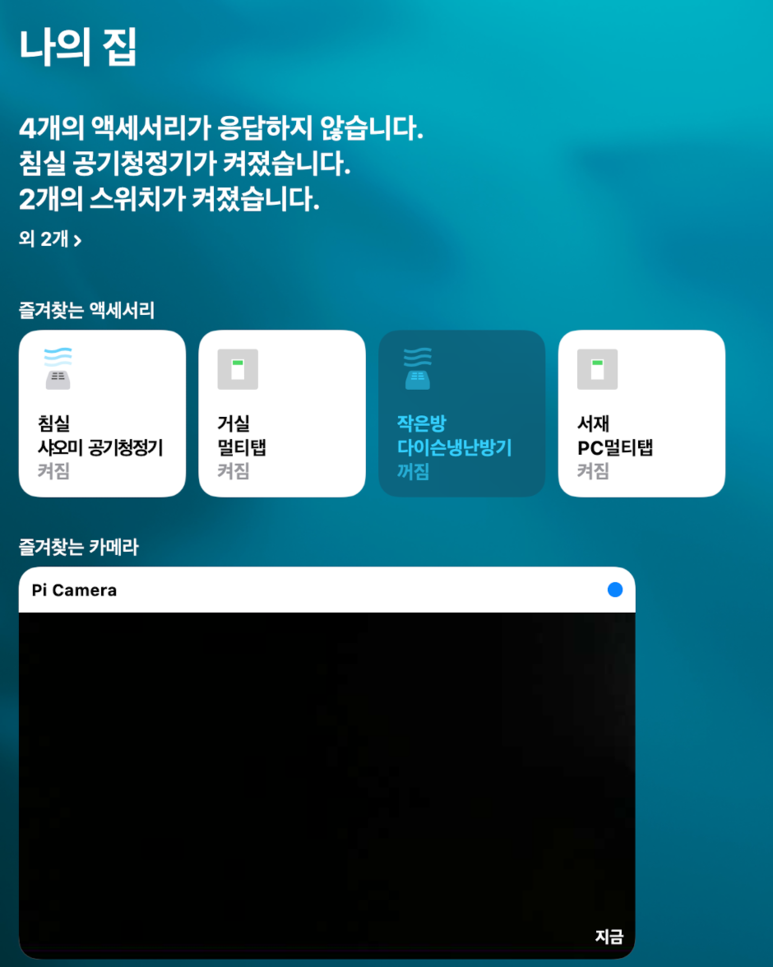 그러면 위에처럼 애플 홈킷에 홈브릿에 등록해놓은 장비들이 쭉 나오는걸 볼수가 있다 마찬가지로 제어도 매우 잘된다.