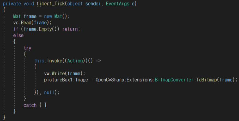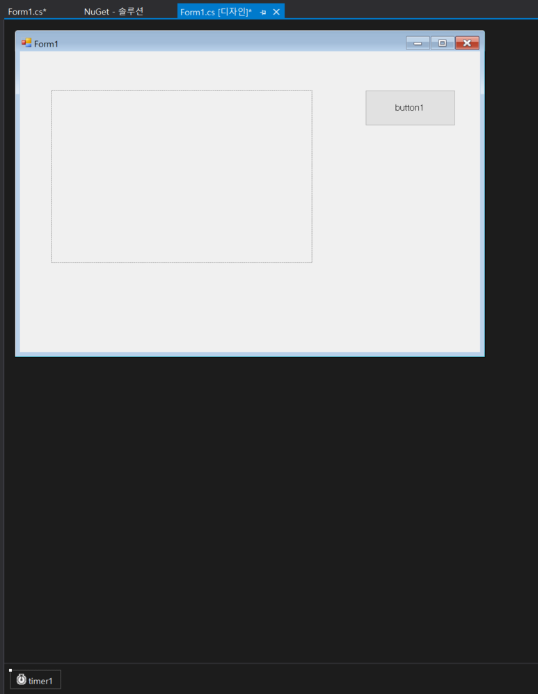 picturebox와 timer , 그리고 영상 가져올거 테스트할 버튼하나를 디자이너에 배치후.