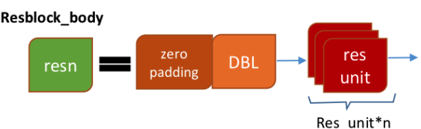 Residual 유닛은 다크넷 컨볼루션 레이어두개를 겹친걸 더한값과 같게 구현하면되고,