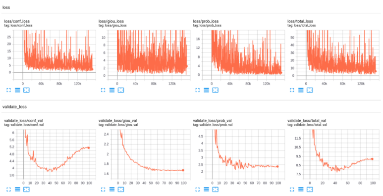 print("\n\ngiou_val_loss:{:7.2f}, conf_val_loss:{:7.2f}, prob_val_loss:{:7.2f}, total_val_loss:{:7.2f}\n\n".